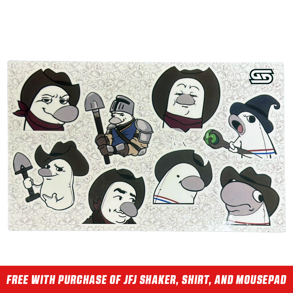 Order with a JFJ Shirt, and JFJ Mousepad in the same order to get a FREE Collectible JFJ Sticker Sheet added to your order! MUST ADD ALL ITEMS! (1 per order)