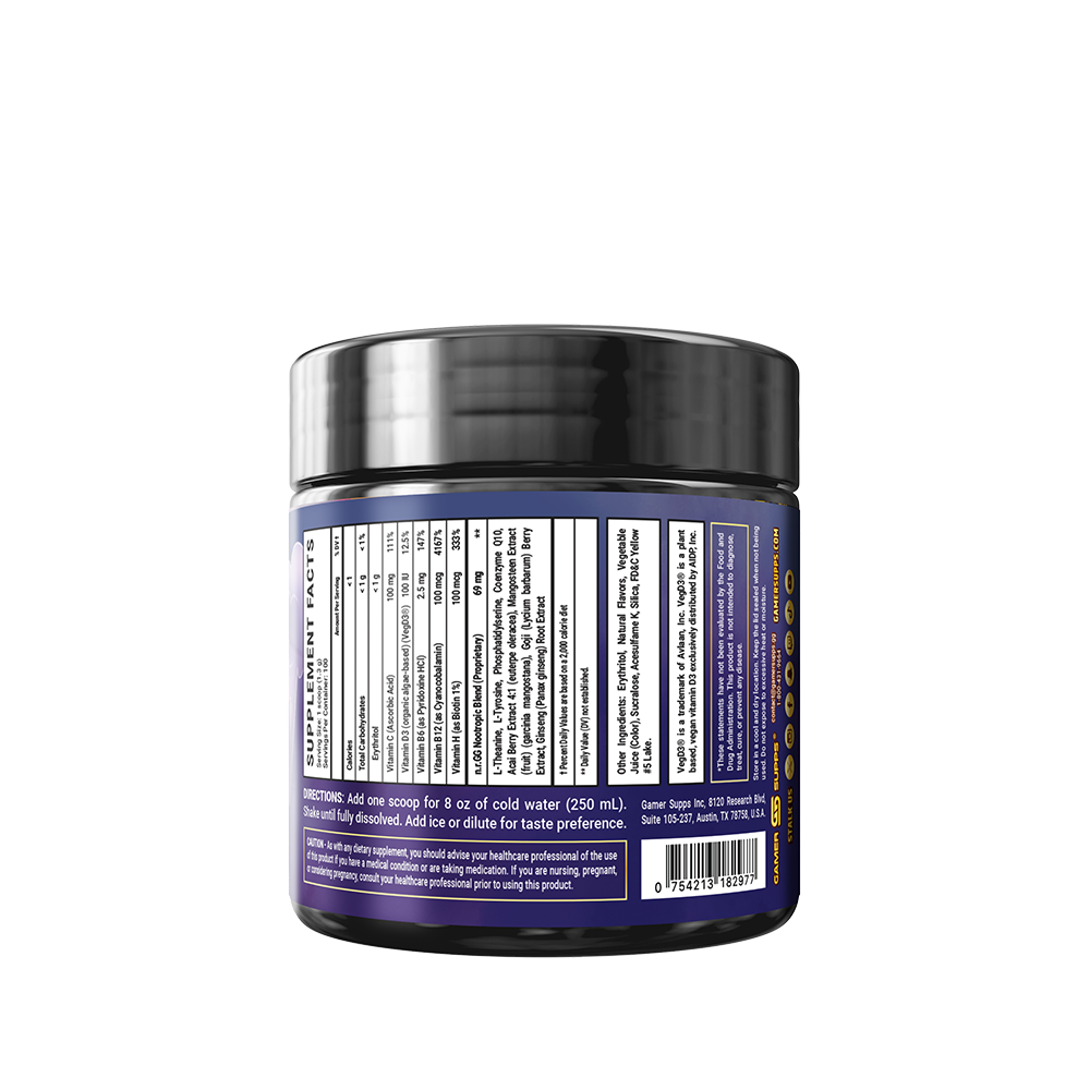 GG is the ultimate energy and focus formula designed to Level Up Your Gaming. The highest quality ingredients make up an energy formula that mixes completely and provides a healthier and more cost effective energy drink.