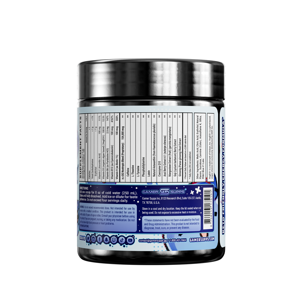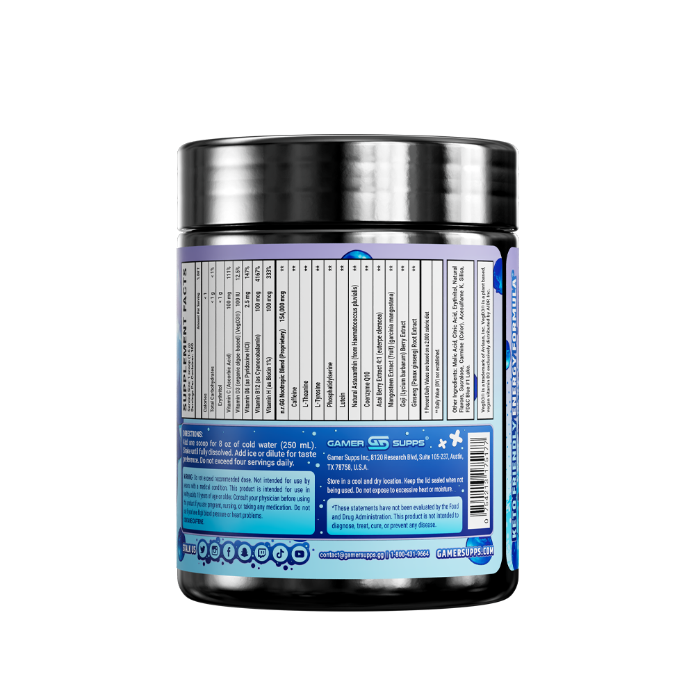 GG is the ultimate energy and focus formula designed to Level Up Your Gaming. The highest quality ingredients make up an energy formula that mixes completely and provides a healthier and more cost effective energy drink.