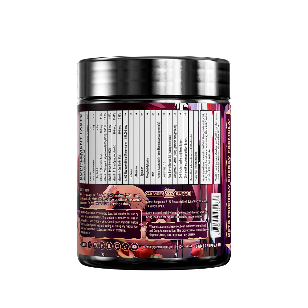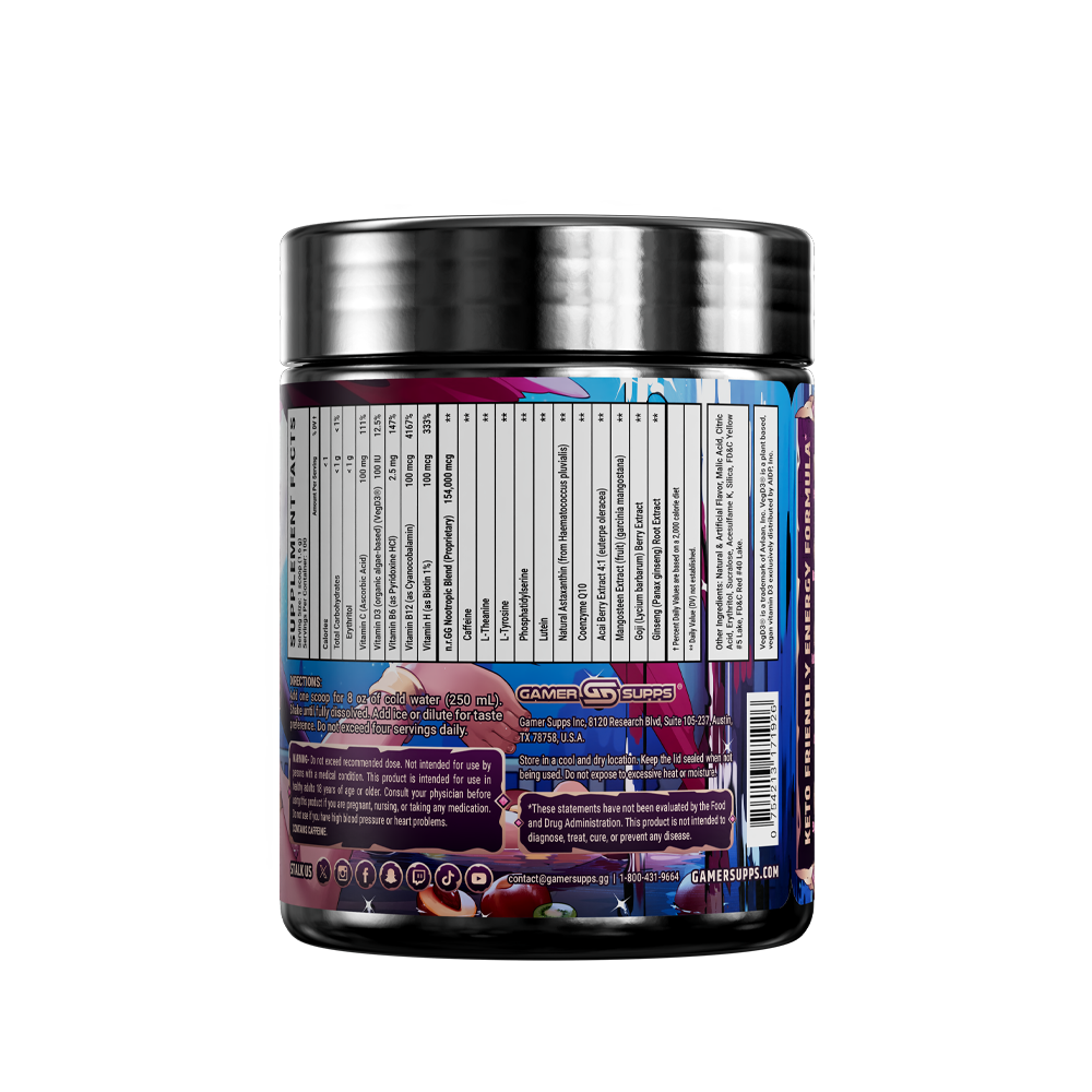 GG is the ultimate energy and focus formula designed to Level Up Your Gaming. The highest quality ingredients make up an energy formula that mixes completely and provides a healthier and more cost effective energy drink.
